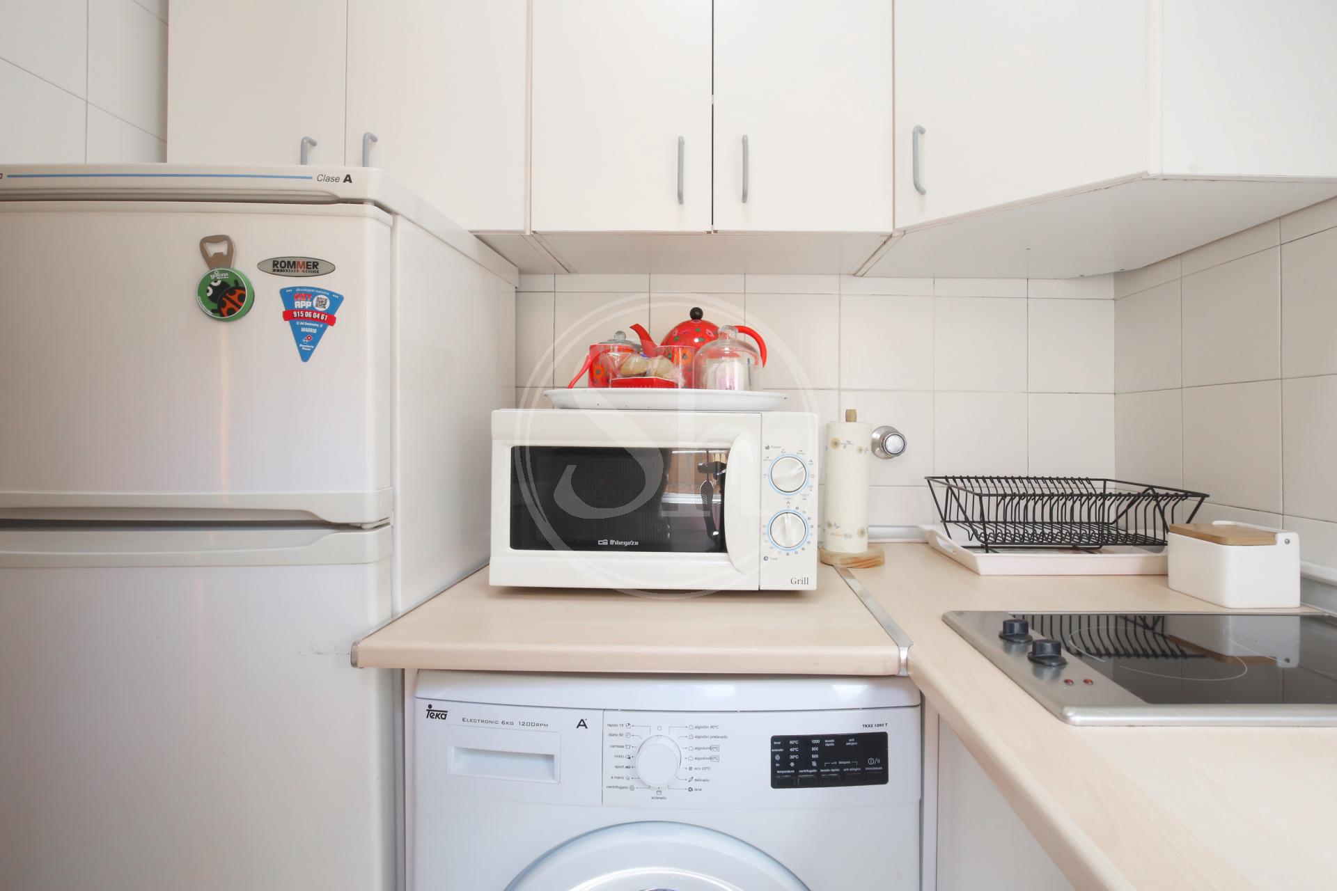 La cucina è separata e dotata di piano cottura in vetroceramica, forno a microonde, frigorifero e congelatore, nonché di tutti gli utensili da cucina . Dispone inoltre di un bagno completo .